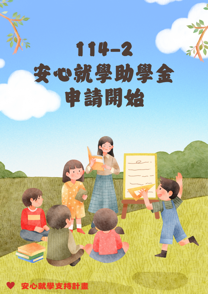 114學年度第1學期安心就學支持計畫安心學習助學金 申請期限:114年8月25日至114年9月22日(一)截止 […] 更多內容