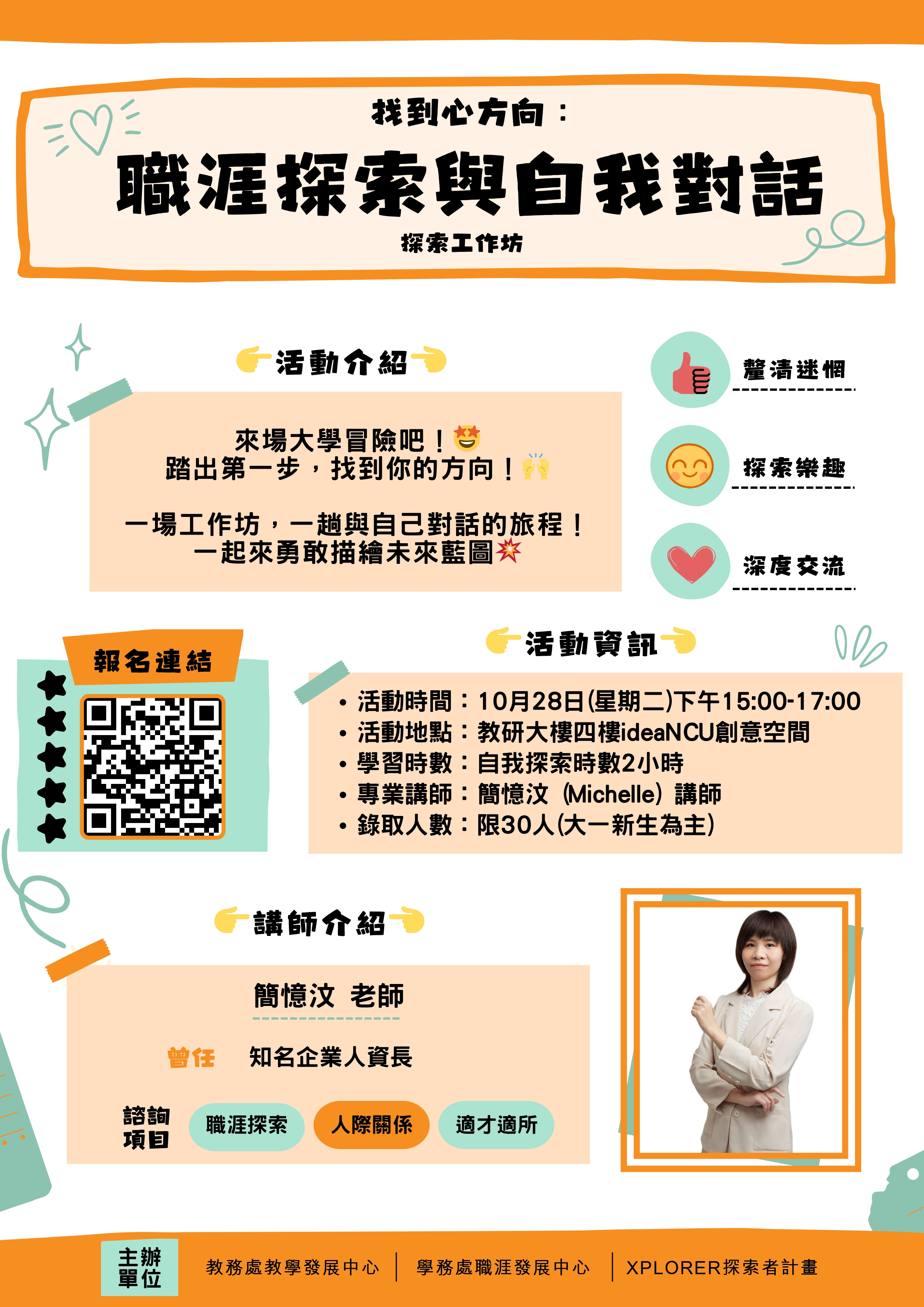 - 主辦單位:教務處教學發展中心、學務處職涯發展中心、XPlorer探索者計畫