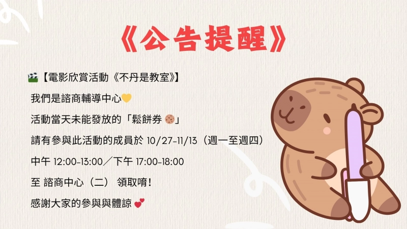 至諮商中心(二)領取唷!