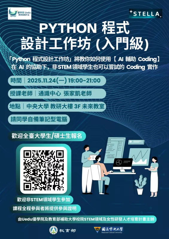 我們將教如何使用 【AI 輔助 Coding】,在 AI 的協助下,非 STEM 領域的學生也能輕鬆嘗試 Coding 實作,跨出程式學習的第一步!